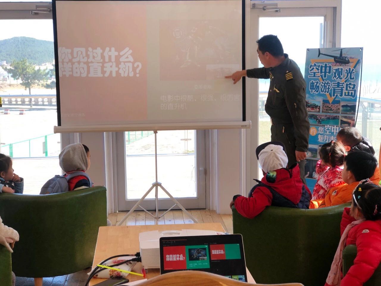 活動(dòng)在小朋友們熟悉的動(dòng)畫音樂聲中開始,工作人員首先為小朋友們送上了小飛機(jī)模型作為見面禮,迅速和孩子們拉近了距離。隨后,通過候機(jī)廳的大屏幕,先為大家播放了極端宣傳短片,借此引入本次活動(dòng)的主題————航空夢想。在現(xiàn)場活潑的氣氛中,通過PPT為現(xiàn)場的孩子們和家長們生動(dòng)有趣的講解了有關(guān)航空的小知識。為了照顧小朋友們的理解能力和孩童視角,PPT由云世紀(jì)航空工工作人員特別制作,結(jié)合熱門卡通形象和簡直白的講解,可謂是寓教于樂。同時(shí),在PPT講解期間,穿插英語教學(xué)環(huán)節(jié),沖鋒英語帶來了美國外教,形象和藹可親、英語發(fā)音純正,教會(huì)了小朋友們許多有關(guān)航空有關(guān)的單詞以及簡單的會(huì)話。在航空小課堂結(jié)束之后是拍照和乘機(jī)體驗(yàn)環(huán)節(jié),每位小朋友都換上了機(jī)長服,在家長的陪伴下,由工作人員帶領(lǐng)至直升機(jī)旁,首次親密接觸這樣一個(gè)大家伙的小朋友都顯得尤為興奮,專業(yè)的攝影師們也為每一個(gè)家庭留下了這值得回憶的瞬間。